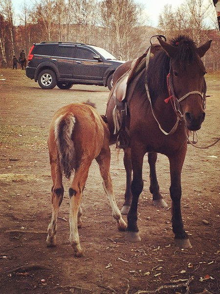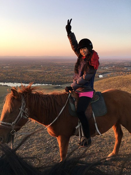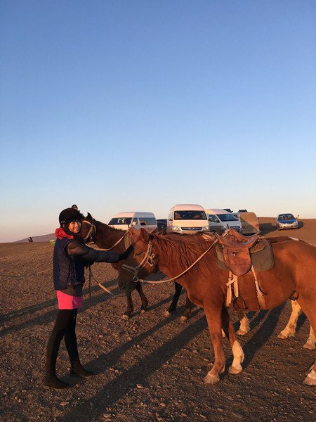 到呼伦贝尔当然要骑一次马,骑马安排在D3的傍晚,去黑山头。这样可以骑着马去看日落,省得爬山啦。价格是300一个来回,貌似有点贵?做功课看到还有100跑小圈200大圈的,我们这个距离比较远,养马人可以1人带3匹马,正好每组家庭一匹,就接受了。