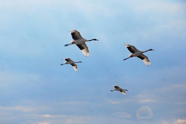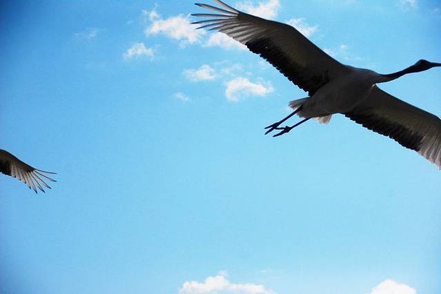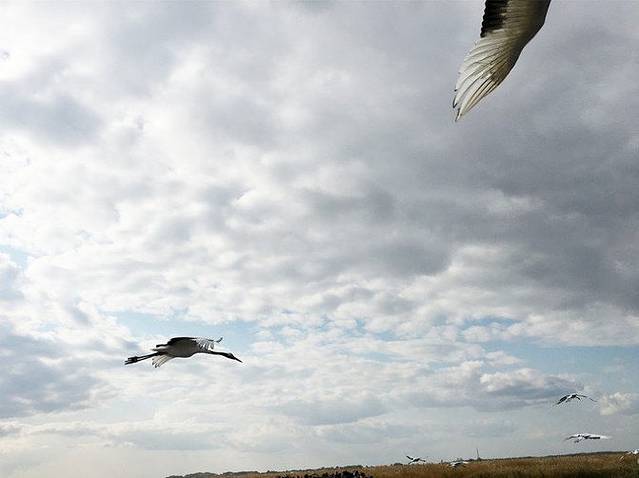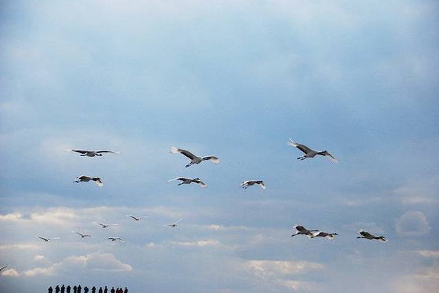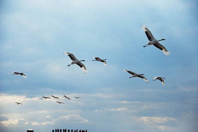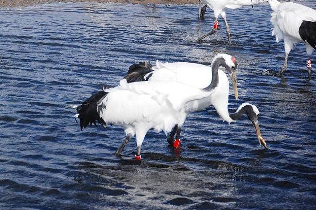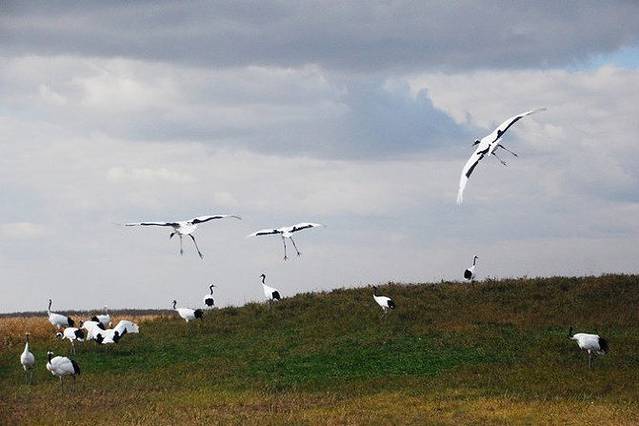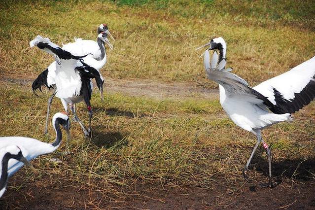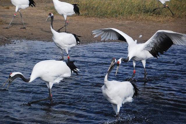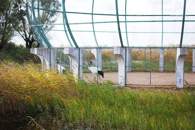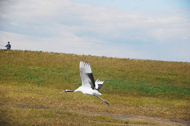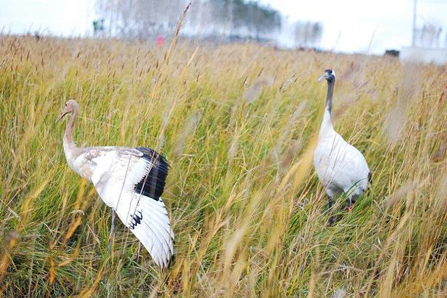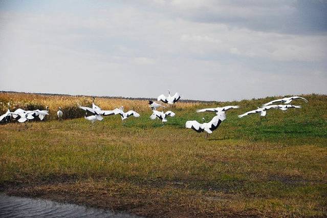 平时,野生的鹤们都生活在这片湿地里,可是因为布满了芦苇,所以一般是看不到野生的,游客们所能看到的都是人工驯养的。