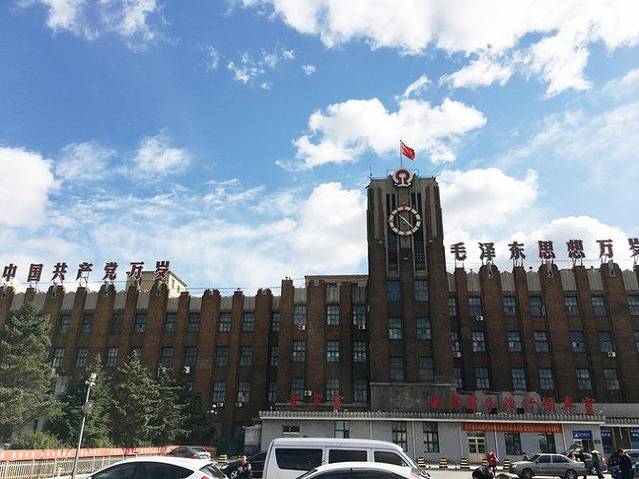 齐齐哈尔的火车站看上去也是有历史的,恰逢国庆,红旗招展。天空真的好蓝,并没有雾霾。