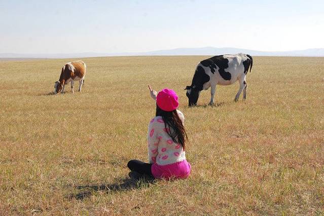 我们的小伙伴飞跃呼伦贝尔大草原。