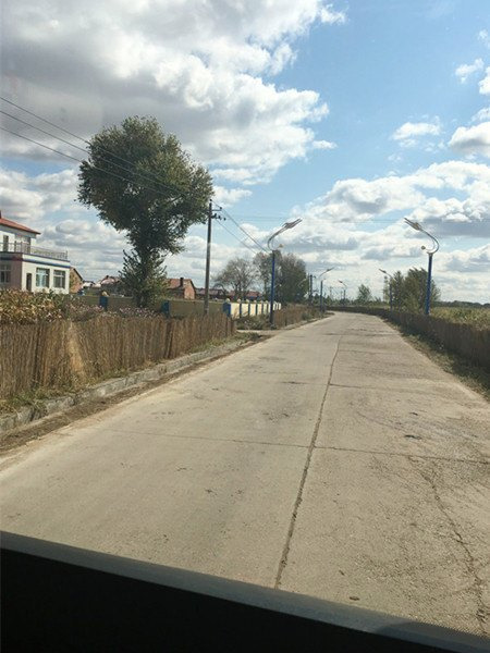 越开越乡村的样子,这是快到了,开在乡间的小路上,两边都是肥沃的黑土地。