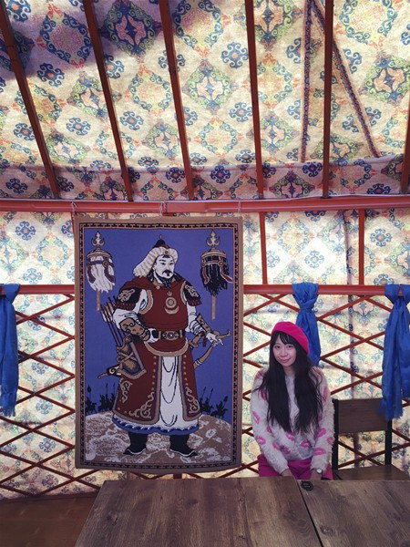 这个才是餐厅,看得出很大吧,挂着受蒙古族人民世代尊敬的成吉思汗的画像。