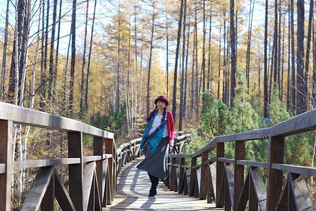 开到莫尔道嘎国家森林公园了,一进大门,就是冯小刚拍过《夜宴》的桥,故被称为夜宴桥。