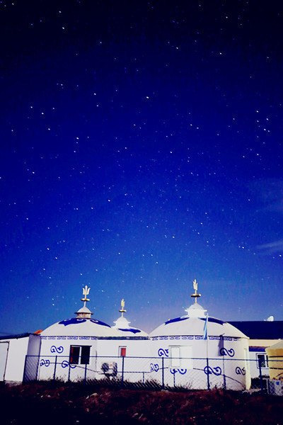 有楼房,也有蒙古包。蒙古包不是在草地上能移动的,而是盖在院子里的,砖砌的,内里布置和现代标间是一样的,卫生间一应俱全,新装了空调不冷。我们住的楼房,还行,有电热水器有空调,睡得很暖和。下图是小伙伴的蒙古包内景,晚上拍星空做前景很棒。