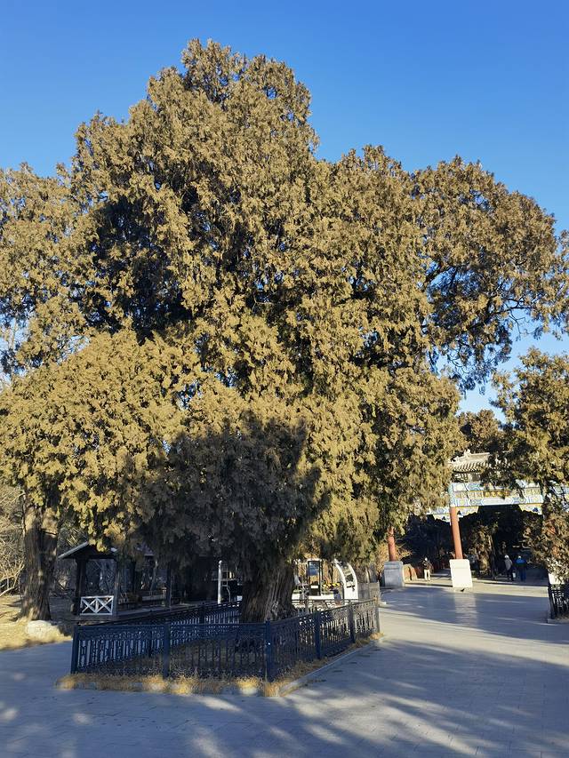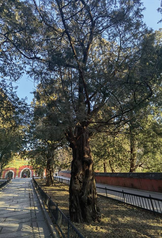 清代所植侧柏虽不如太庙天坛的千岁古柏,也二人难以合抱,树干上似有蟠龙伏虎