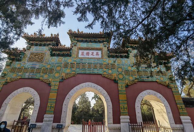 买票五元之后,信步到山门。这是一座琉璃牌楼,和朝外东岳庙的差不多,据说北京类似的琉璃牌楼还有十座。