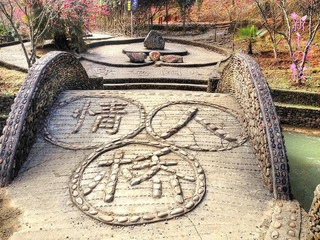 进入景区后,就可以看到正门用花摆设成的字样:欢迎您来樱花峪,让人眼前一亮。然后就能看到一个樱花餐厅和小卖部,我们买了碗豆腐花,边吃边看。