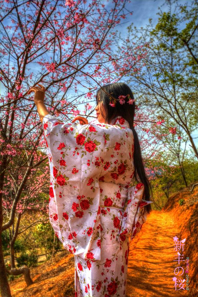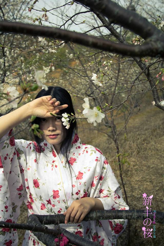 在计划来赏樱花的时候,我就打算拍一组和服樱花的照片,所以这次网购了一件简单的和服,大红的花色,和服穿起来也算挺方便的,直接往上套就好了。。。