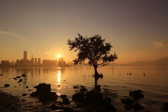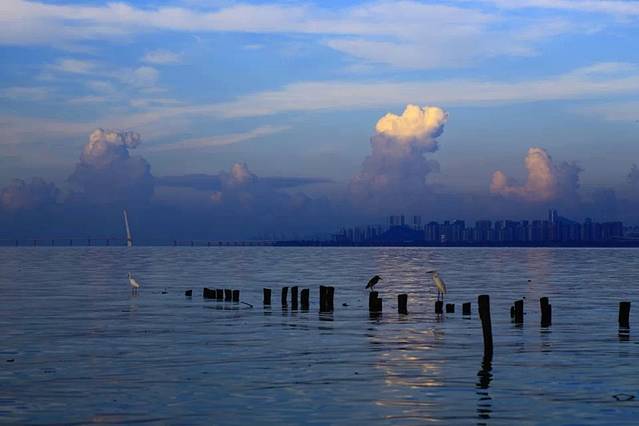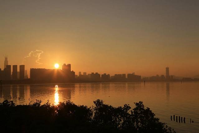 第二天早上到红树林的日出广场拍日出,深圳湾公园很大,早上有好多人跑步锻炼,从红树林滨海大道入口到日出广场步行差不多要半个小时,日出和日落的照片我真的分不清楚,不知道别人看不看得出了。