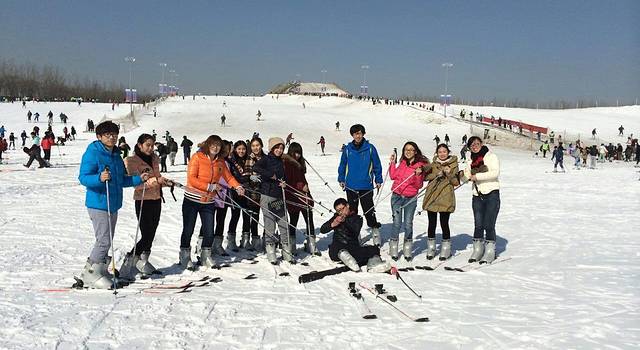 大家穿上雪具手拿雪仗还真有点专业的意思。