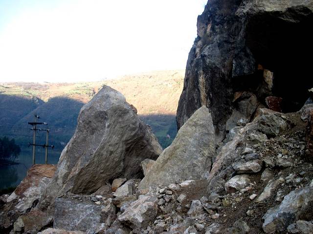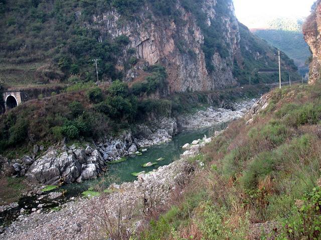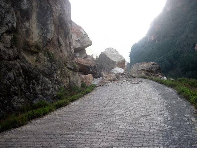 塌方了!折头吗?我看了半天,决定抬车过。心惊胆战的,有点后怕。不过一路上看到宜良到澄江的班车照开不误,应该是有其它路的。