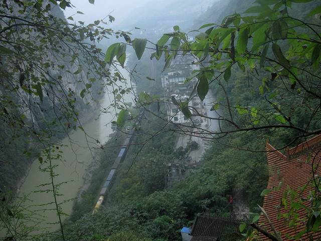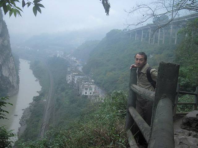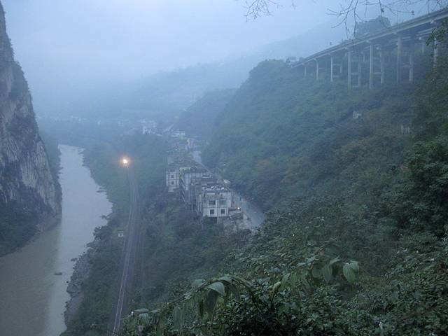 吃了午饭,10元摩的坐到豆沙关火车站,就在离豆沙关镇三公里的坡脚的牌子那里,朝昭通方向走几百米,有一座铁索桥,过了桥顺着水泥路走到底就是了。还是有点远的。