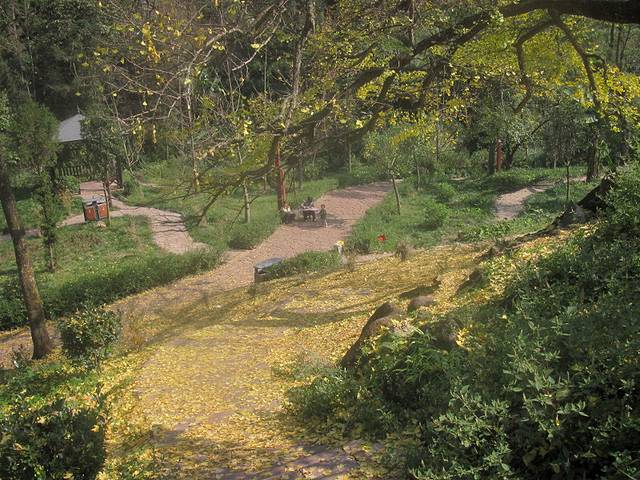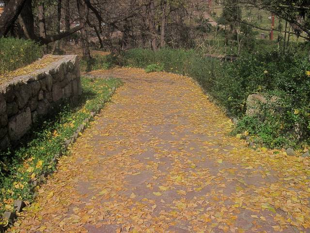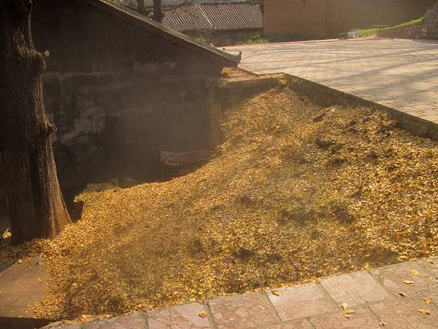 一路路况时好时坏,有好多坑。一直坐了一个多小时,到了去妥乐村的路口把我放下,路边就有拉客的摩的,10元把我拉到妥乐村,要收门票,30元。司机说多加10元带我“冲”进去,我同意了。于是直接被拉进村,没买门票。我问了摩的司机,门票收入他们一分钱都没有。想想花钱买门票给ZF给那些“公司”,还不如直接给他们。还是去晚了,银杏叶落了不少了。