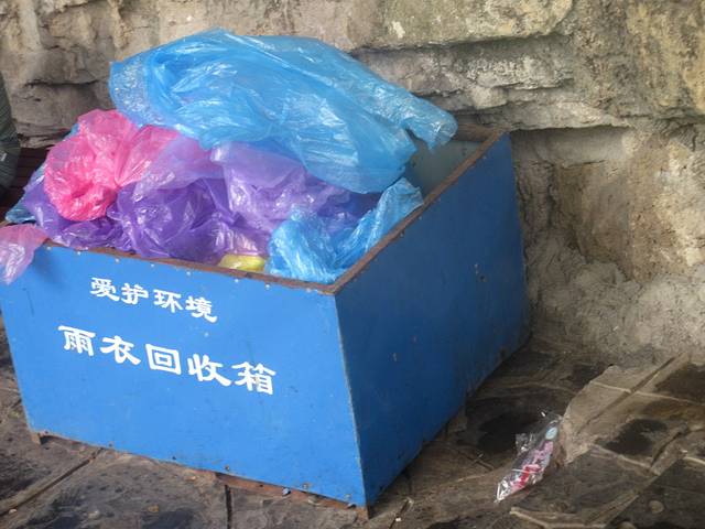 出水帘洞有个雨衣回收箱,废物利用是好事,但是我很怀疑这些雨衣会不会被整理后再次卖给后来的游客?无本的买卖啊。