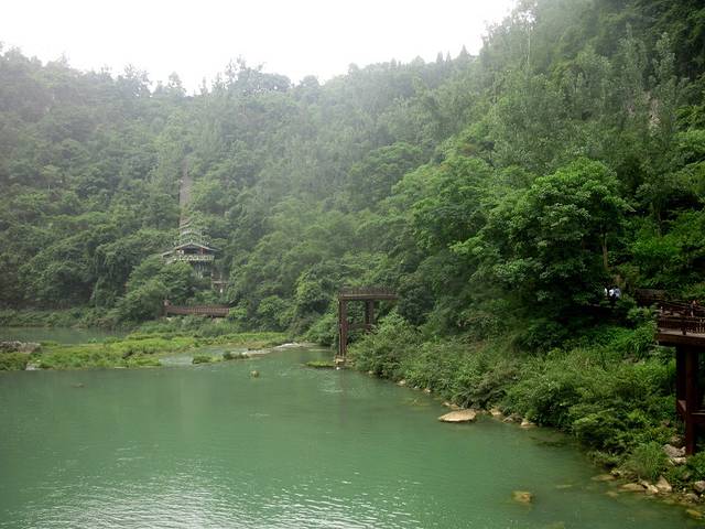 上车,发现我是唯一的散客,其它全是一个旅游团的。去第一个景点,陡坡塘。几分钟就到了。