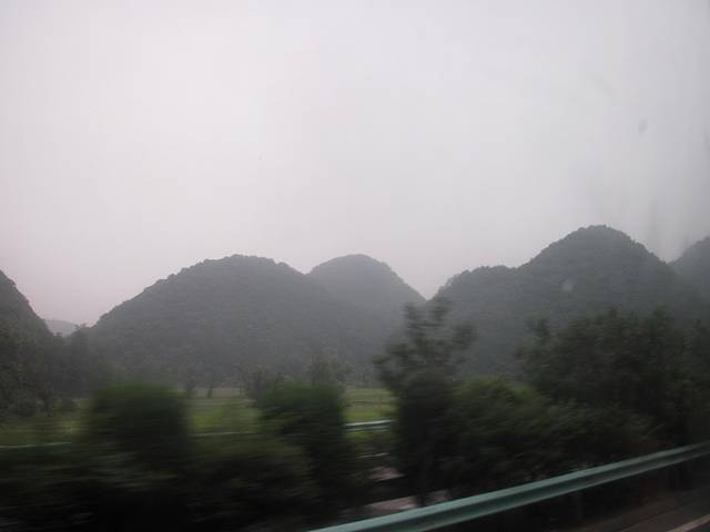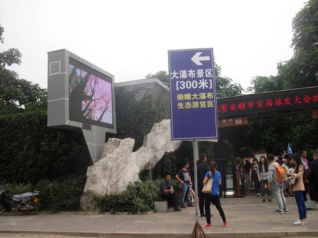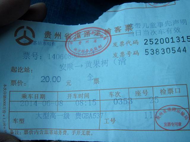 出了火车站,坐2路车到客运东站,来前在网上查了,现在安顺的汽车客运站只剩2个了,一个东站,一个北站,多数车在东站。坐了近1个小时,终于到了客运东站。20元买了去黄果树的车票,马上上车,马上开车。车站就在高速边上,车出站就上高速了。全程高速,大概45分钟到了黄果树景区。