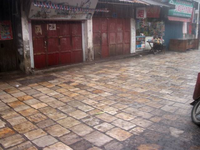 正在吃饭,下雨了,雨好大,还好带伞了,放弃去文庙,蹚水回到住宿的地方。