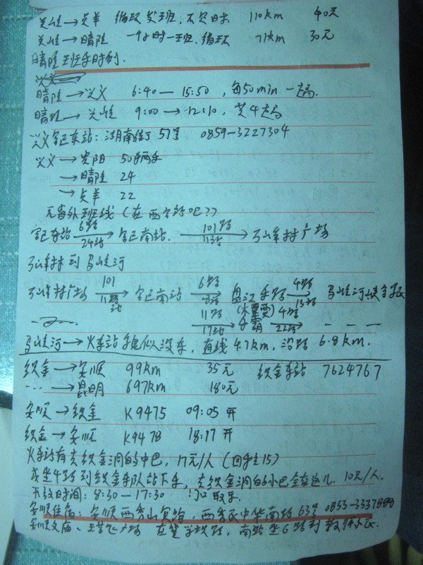 出了车站,好多出租车公交车,我没有看到传说中的火车站直达织金洞的车(后来回来坐火车时发现还是有的,可能我没注意),问了公交司机,坐上4路,进县城。在童生桥下,对面就是织金车队,里面有去织金洞的车。