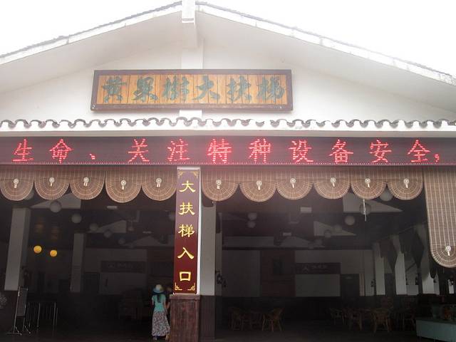 从一进门,就有N多的大妈阿婆围着要我买雨衣,呵呵,我自带了,而且后面证实,根本不需要。到等车这里,我犯傻,在这里呆呆的等,后来等了半天才发现,这里等着的人全是旅游团等导游买票的,直接拿着大巴票去前面调度室就可以上车了!浪费半个多小时!