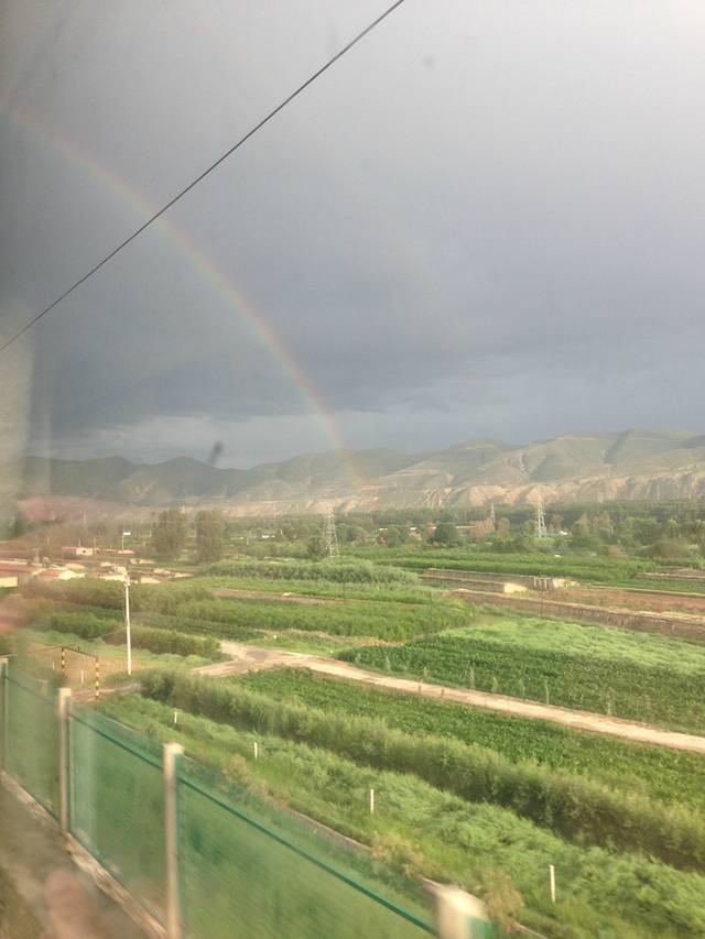拉萨现在是雨季,在火车上看到了彩虹,好开心