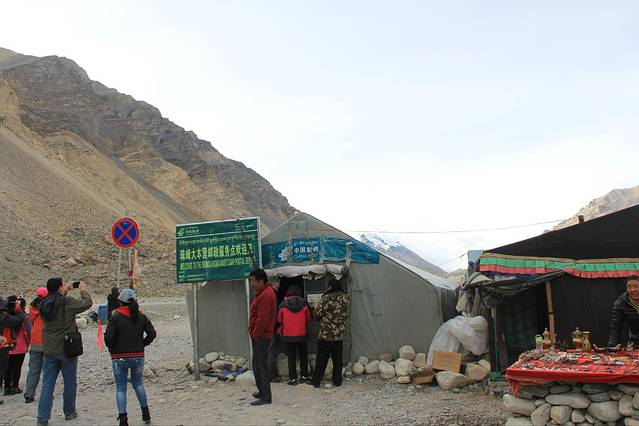 在路上堵了五个小时,终于半夜十二点到达珠峰大本营,路上还遇到一越野车的车胎爆了两个,又没信号,拜托我们到了大本营帮他们给家人报个平安。