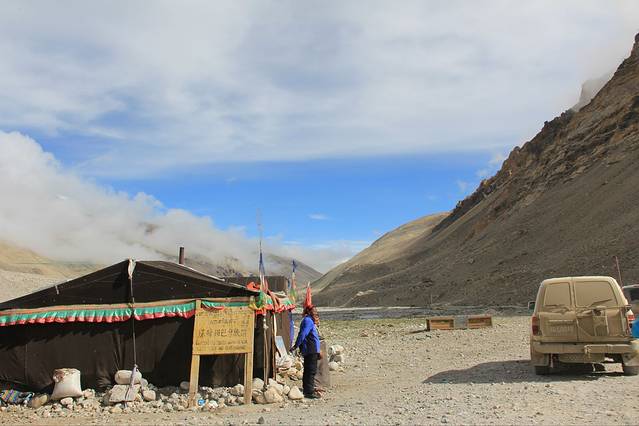 定日的路根本就不是给车开的,现在又是雨季,泥路都被水淹了,好多车都陷了。司机真的要水平高。