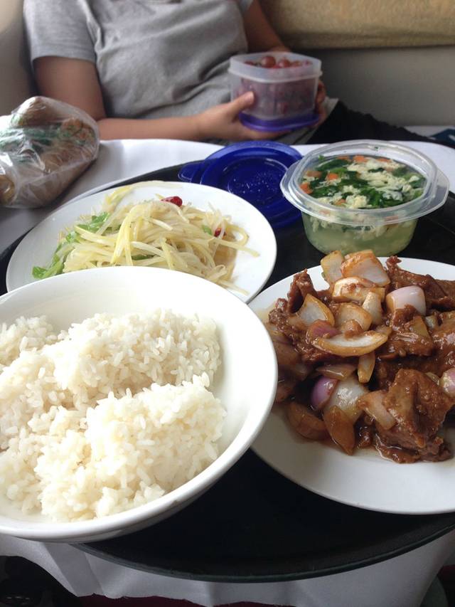 隔壁就是餐车,伙食还不多,价格也尚可接受。我们也算是作了广告了,路过的人看到都饿了,哈哈