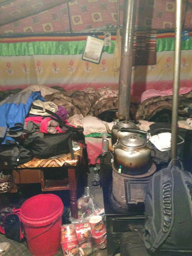严格上一个帐篷只能睡6个人,但是我们帐篷挤了十来个人,晚上有人来查房。好不容易到了珠峰居然不能睡觉,还要躲查房的,真是哭了。哎,最后搞到三点才睡