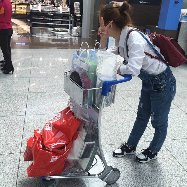 额……行李托运完了,好基友推着的是又买的一部分了啦,真怕天津海关给扣下。