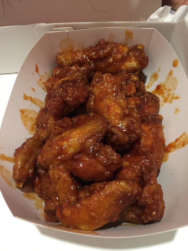 炸鸡 下面是炸土豆片,就是灯光太吓人。