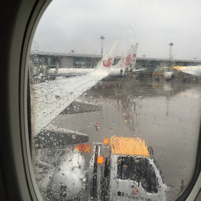 因为是八点四十五的飞机,要求六点三十集合。四点半就起床啦,收拾好准备粗发。但是天津下雨,宝宝内心还忐忑了一回怕飞机延误。