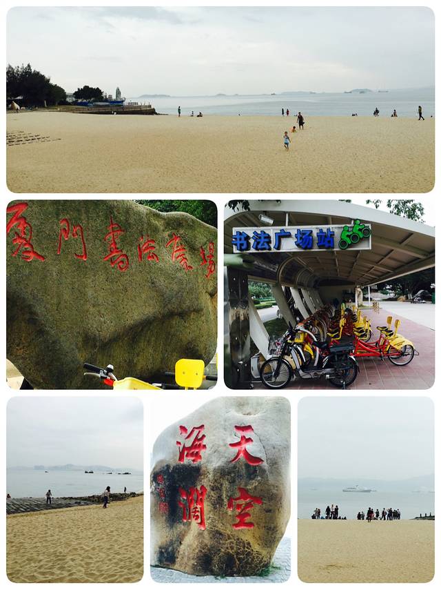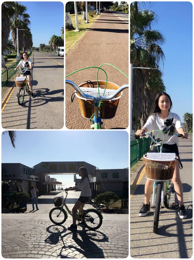 今天的主要行程是骑行环岛路,书法广场就有自行车出租,我去的太早,他们还没上班,我就去海边走了走,阳光灿烂,海和沙滩很干净。8点左右服务点有人上班了,我租了3小时的自行车,70元,