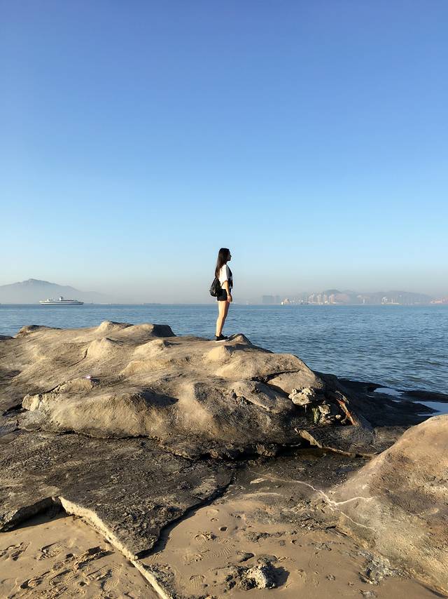 这张照片是在书法广场前的一片沙滩拍的,接下来的几张都是,去得早没什么人,照片就很美啦,沙滩也很干净,比阳江、西冲好很多啊