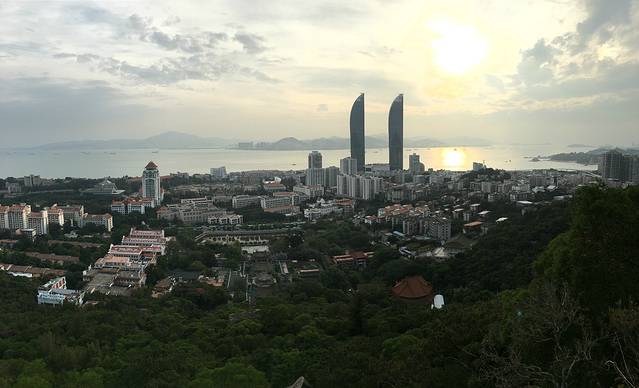 山顶可以俯瞰整个厦大,景色挺壮观的,特别漂亮,夕阳映照下的厦门更加迷人