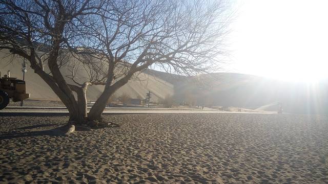 这张摄于一大清早抵达敦煌火车站,火车站门口取景,太阳马上就要跳出来了