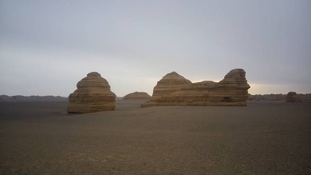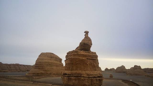 第二天:其实我个人不怎么推荐魔鬼城雅丹的,首先太远了,包车要坐两三个小时才能到达那里,来回屋六个小时呢,观光车沿途让你沿途四个地方下来,每个地方差不多限时10到15分钟,一个小时就解决了。其次不值得,雅丹地貌,的确壮观,可在我外行人中它就是一个个神奇的土堆子,若碰不上阳光天气,就更恼人了。我那天就是奔着雅丹日落去的,可阴天,忧桑啊。反正我觉得这个景点是很坑人的,什么汉长城,玉门关,我更不想说了,那个遗址我都已经看不到多大的残骸了。玉门关20元门票,就相当于收过路费嘛,那样的观光车要收70元,打劫呢,觉得这钱花得不值得,希望有关部门能加强对景点收费的管理。