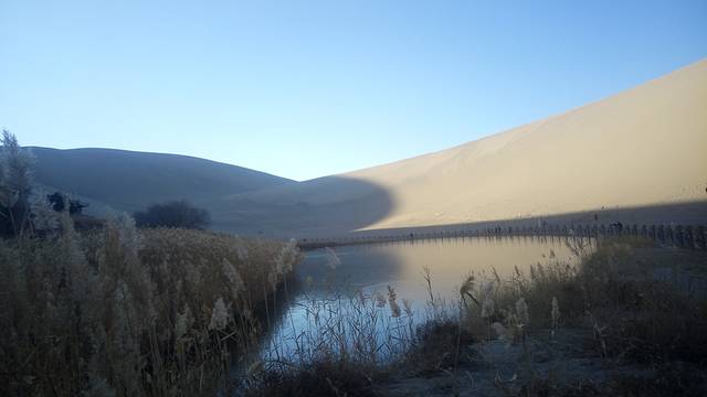 月牙泉,要远观哦,不然就没有月牙形状了