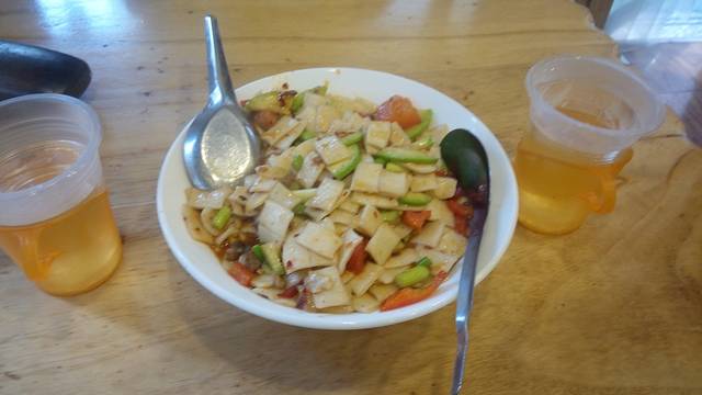 肉夹馍(太干了,吃了两次,失望,不爱吃) 羊肉泡馍(太大份,一个人是解决不了的) 凉皮凉粉(跟我们这里味道差不多)