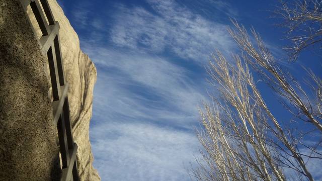 白杨树的枝桠也长得很奇特的,像带电的头发。
