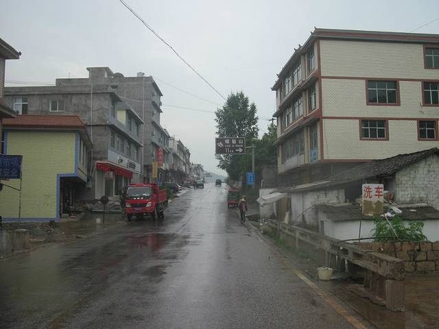 接下来一路放坡,就到了螺髻山镇了。路上居然下起了雨,还好雨不大。这里离景区还有11千米。