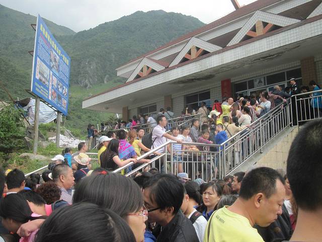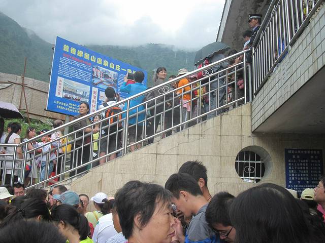 排了1个多小时队,终于坐上了摆渡车。到了坐缆车的地方,这里排得人更多!本来我想爬上去的,但是想到还要骑车回去,还是老老实实排着坐缆车吧。