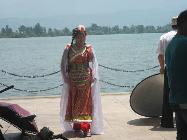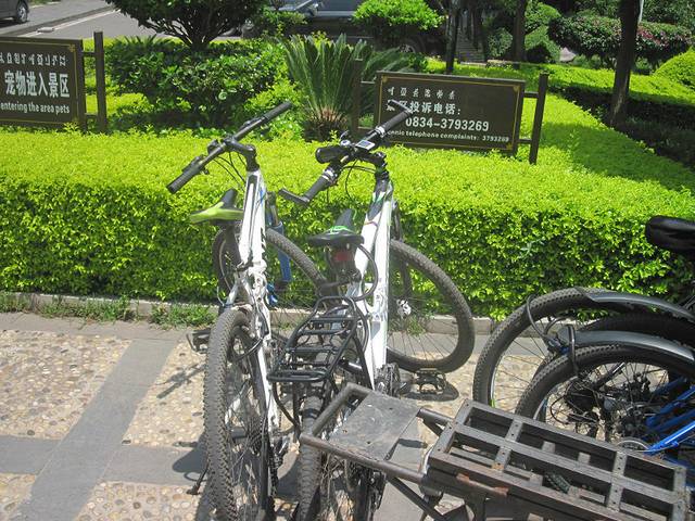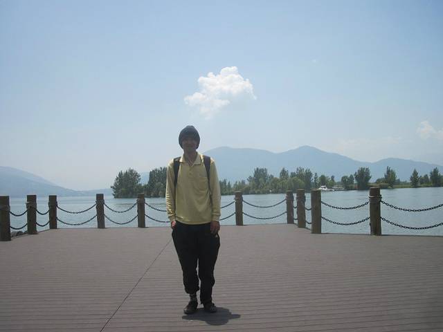 完了再回到租车那里,开门了,40元每天,租了辆捷安特。租3天,押驾照,没交押金。还带锁。骑到邛海边上了。