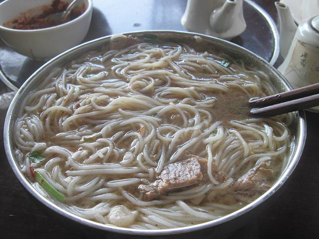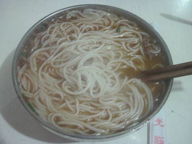 吃晚饭,是“牛肉粉”,端上来一看,就是米线嘛!