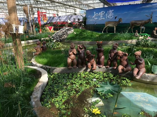 精品馆内的人偶。看小宝贝很好奇。馆内都是买个种土特产。我们对购物不怎么感兴趣就没往里面走,还是赶紧看看外面的花花绿绿吧。