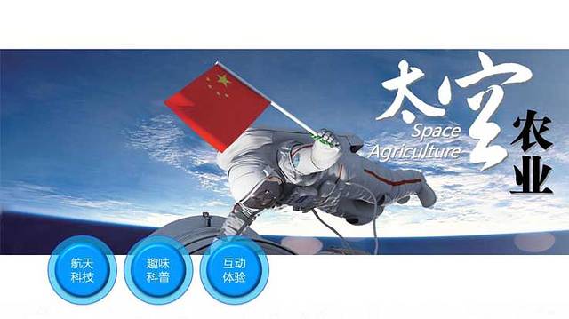 本馆以航天科技(航天育种技术、航天遥感、导航技术)对我国农业的发展贡献为设计主题,以展示我国航天科技农业取得的重大成果为展示重点,以互动体验航天科技在农业中的具体应用为亮点,通过虚实结合、寓教于乐的手法组织设计整个展区。