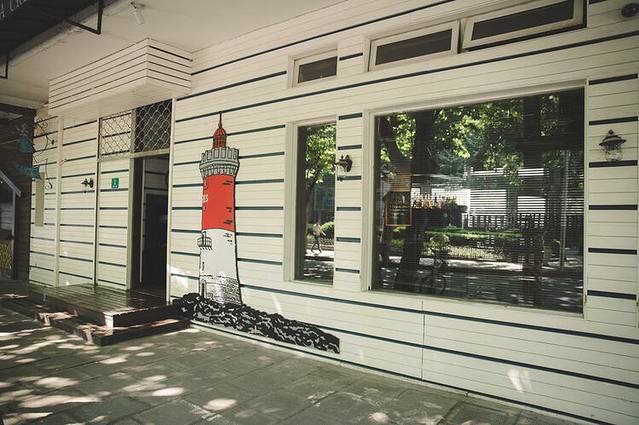 路边小店墙上的灯塔