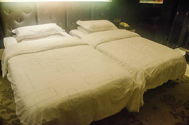 床很舒服,比较柔软。但是两张床之间隔的空隙过于狭小,这样有可能是为了节约两边的空间吧?