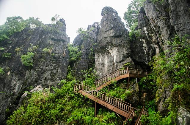 真的是一夫当关万夫莫开的气势啊,一个木质的楼梯通往山顶,好神奇啊。