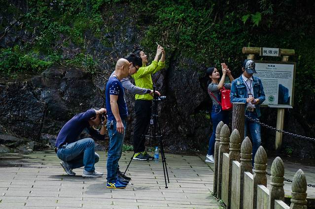 众多游客到达景区之后不禁的为这气势磅礴的山石所震撼,便纷纷的拿起手机来拍照了,还有专业的摄影师也在拍照呢。