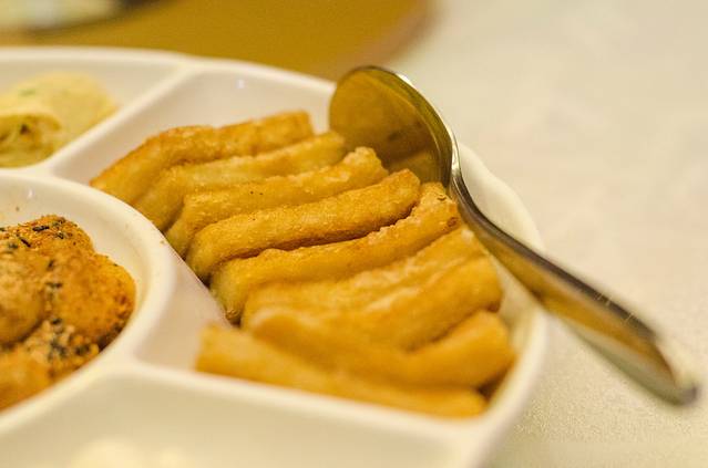 这个就是油炸米糕,外脆内糍,略带甜味、清香无比,是难得一见的美食小餐。
